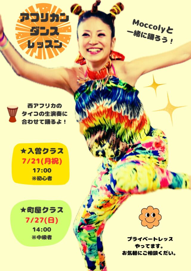 2025年7月20日 日曜日 20:04 更新 アフリカンダンス 夏だー🔥アフリカンの季節がやってきた!さあ踊るぞー✨ 🟥 7/21(月祝)・8/23(土)入曽 地域交流センター17:00〜19:00 🟩 7/27(日)・8/10(日)・ 8/24(日)町屋 荒木田ふれあい館14:00〜16:00 🔶お問合せ・ご予約09018559651