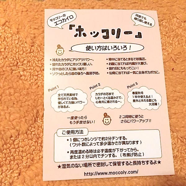 電子レンジでチンして繰り返し使えるエコカイロ。