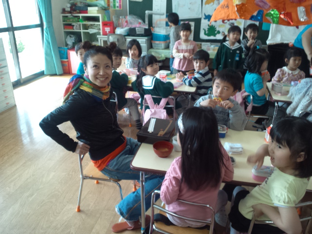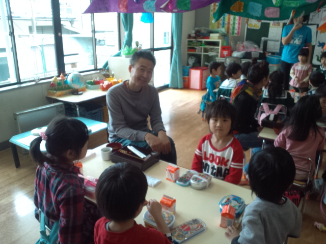 二本松幼稚園の年長組のみんなとお昼ご飯を食べた。